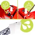 Mechanizm jest prosty w obsłudze, bezpieczny i dostosowany do małych rączek – dziecko samo może napełnić zbiornik (z pomocą rodzica) i rozpocząć akcję.