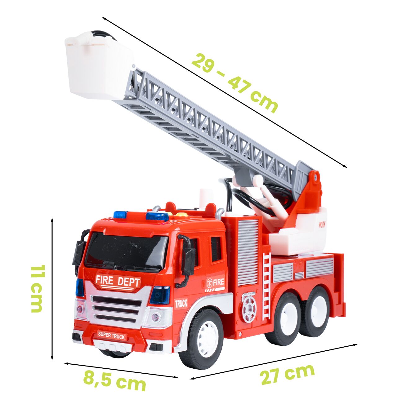 - duży rozmiar 32 cm – wygląda jak prawdziwy wóz strażacki