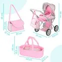 Wózek 3w1 dla Lalek Gondola Spacerówka Nosidełko Akcesoria Kosz Regulowany