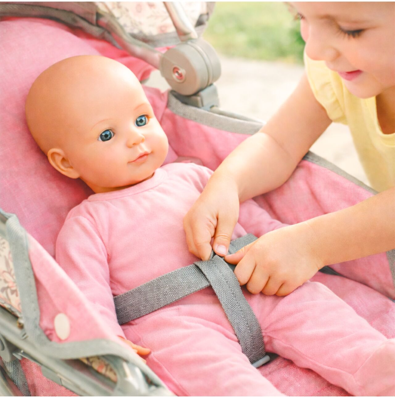 • Pasy bezpieczeństwa: lalka stabilnie siedzi/leży i nie wypada podczas jazdy