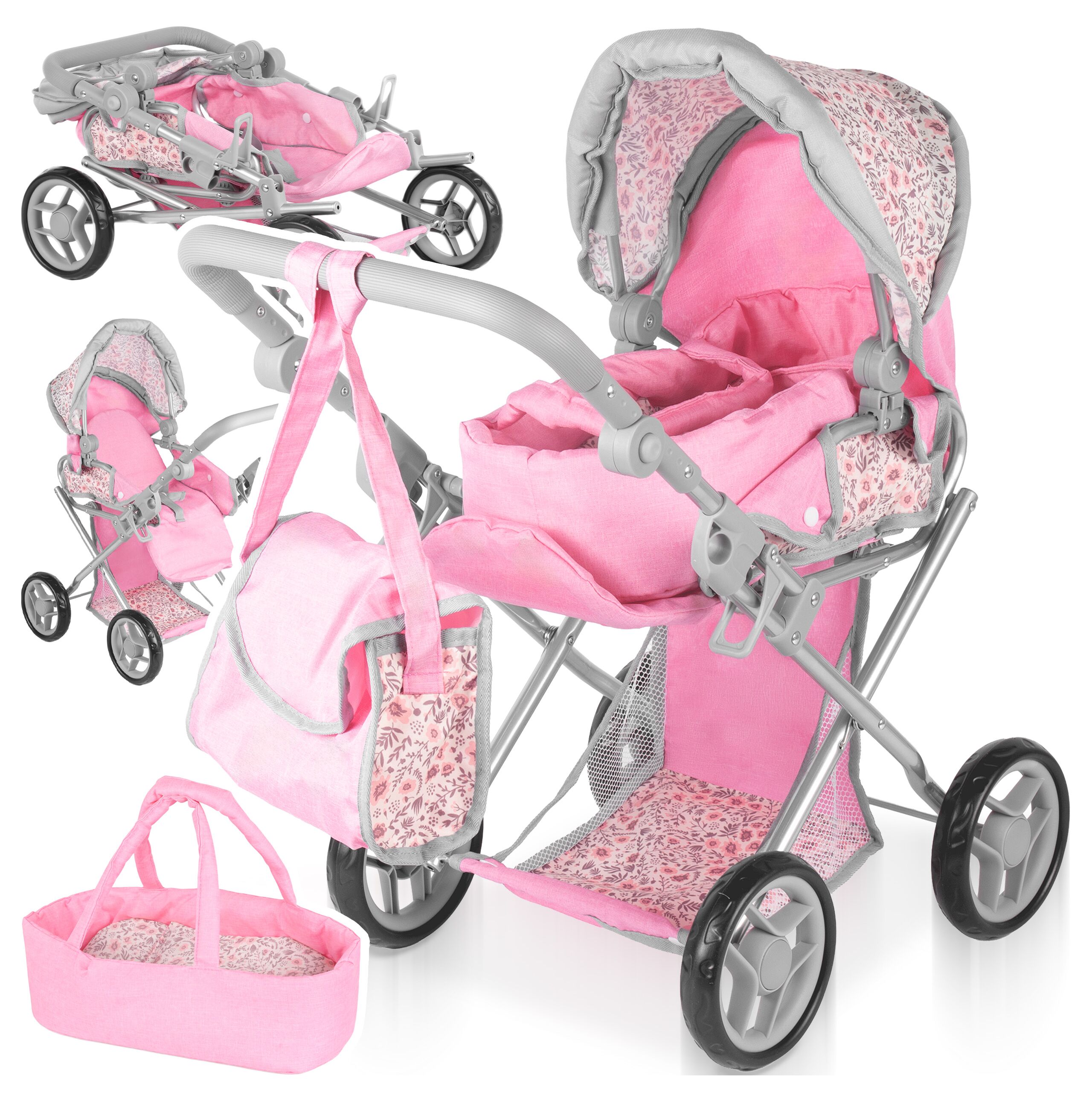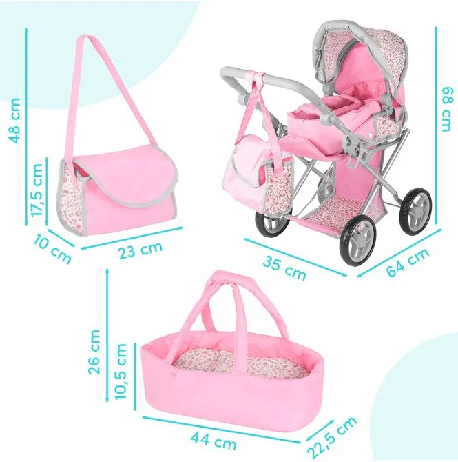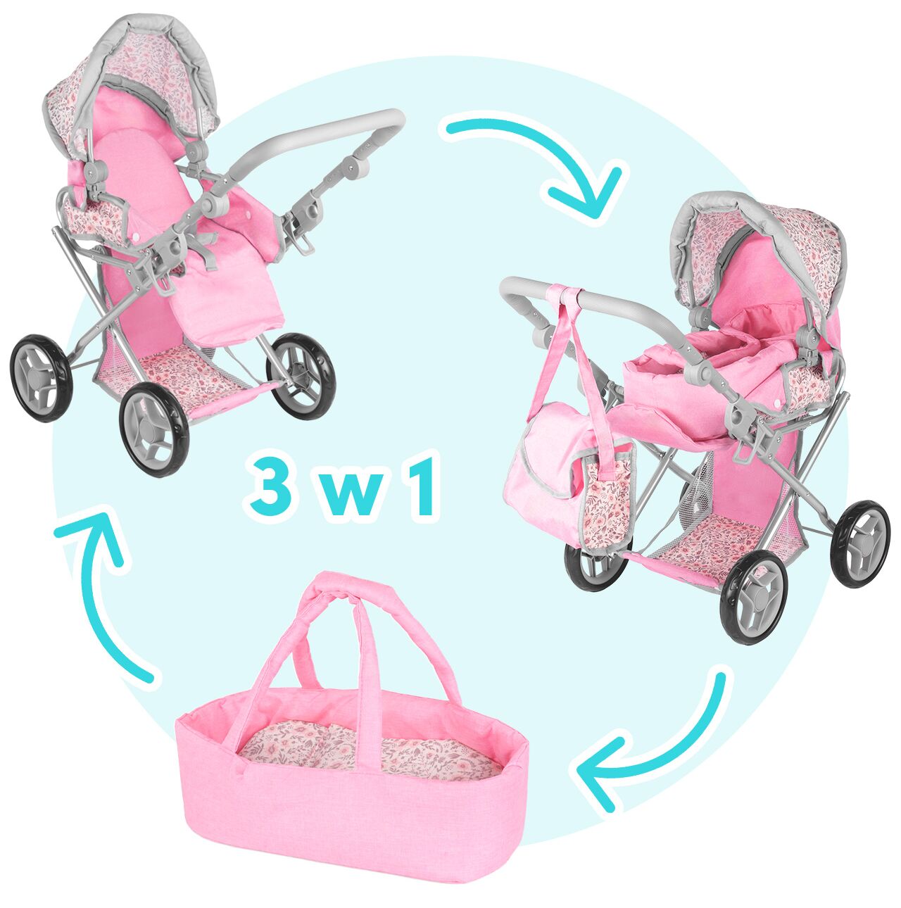 • wózek 3w1 dla lalek: gondola + spacerówka + nosidełko