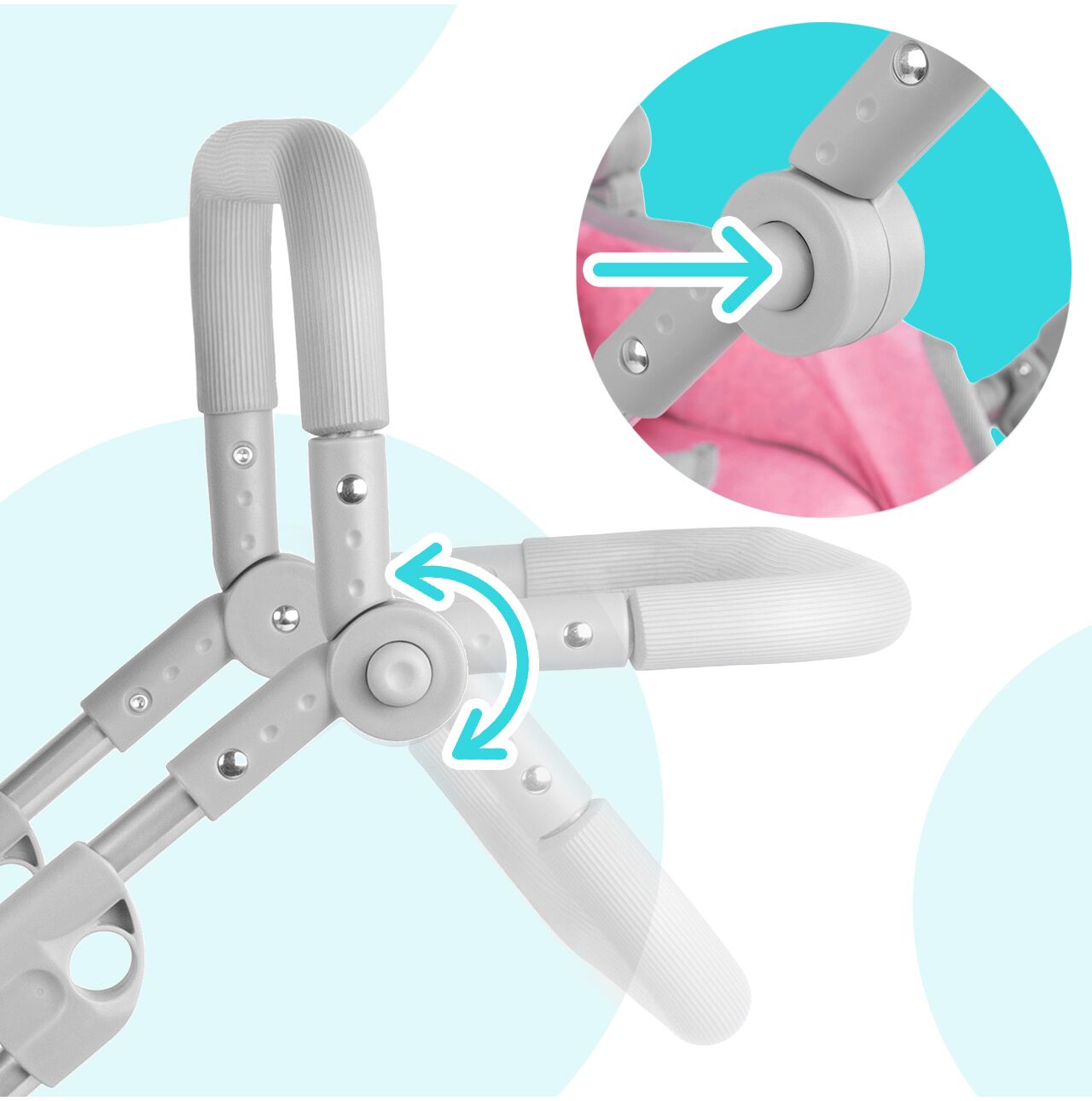 • Regulowana rączka: łatwe dopasowanie wysokości do wzrostu dziecka