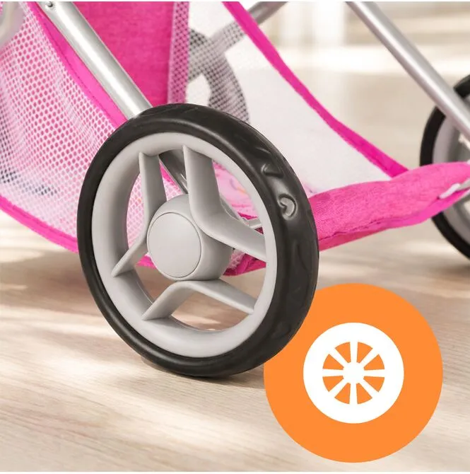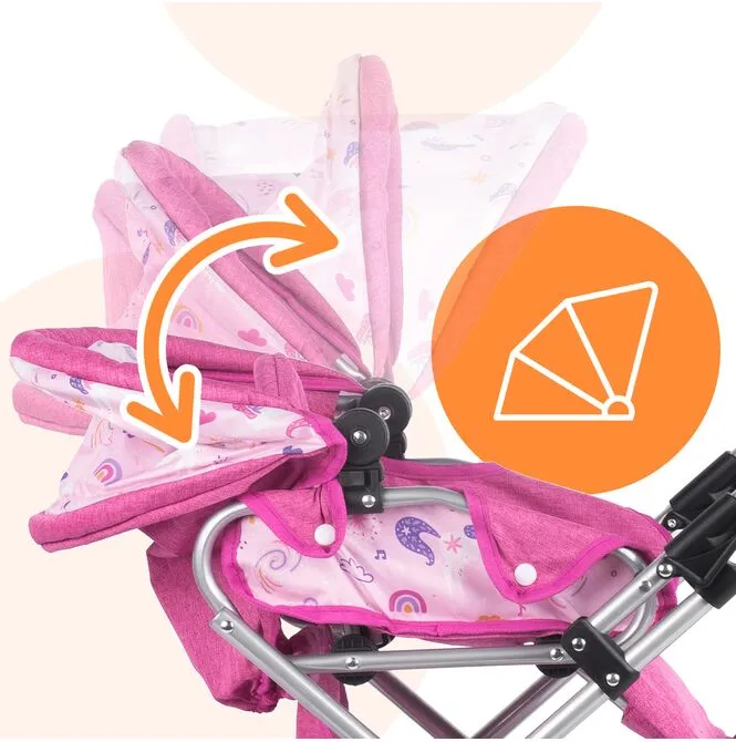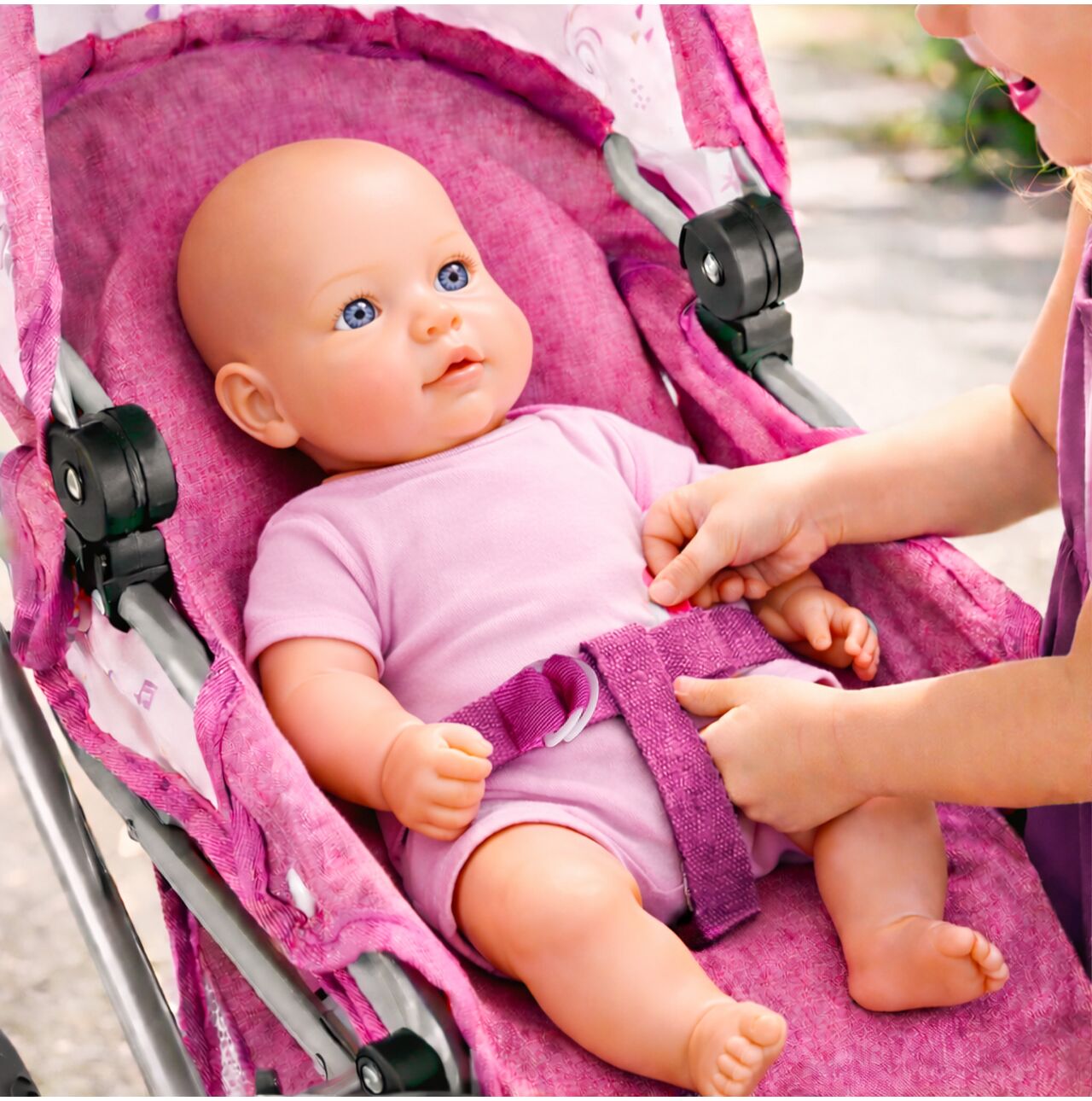 - Regulowane oparcie: umożliwia ustawienie lalki w pozycji siedzącej, by mogła podziwiać świat, lub leżącej, gdy nadejdzie czas na drzemkę.