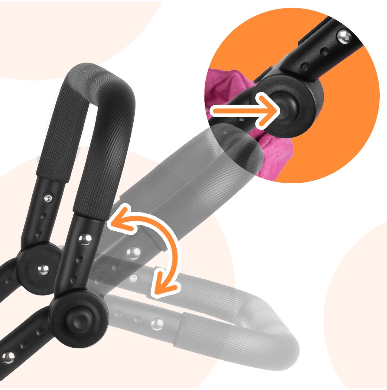 - Regulowana rączka: łatwe dopasowanie wysokości do wzrostu dziecka