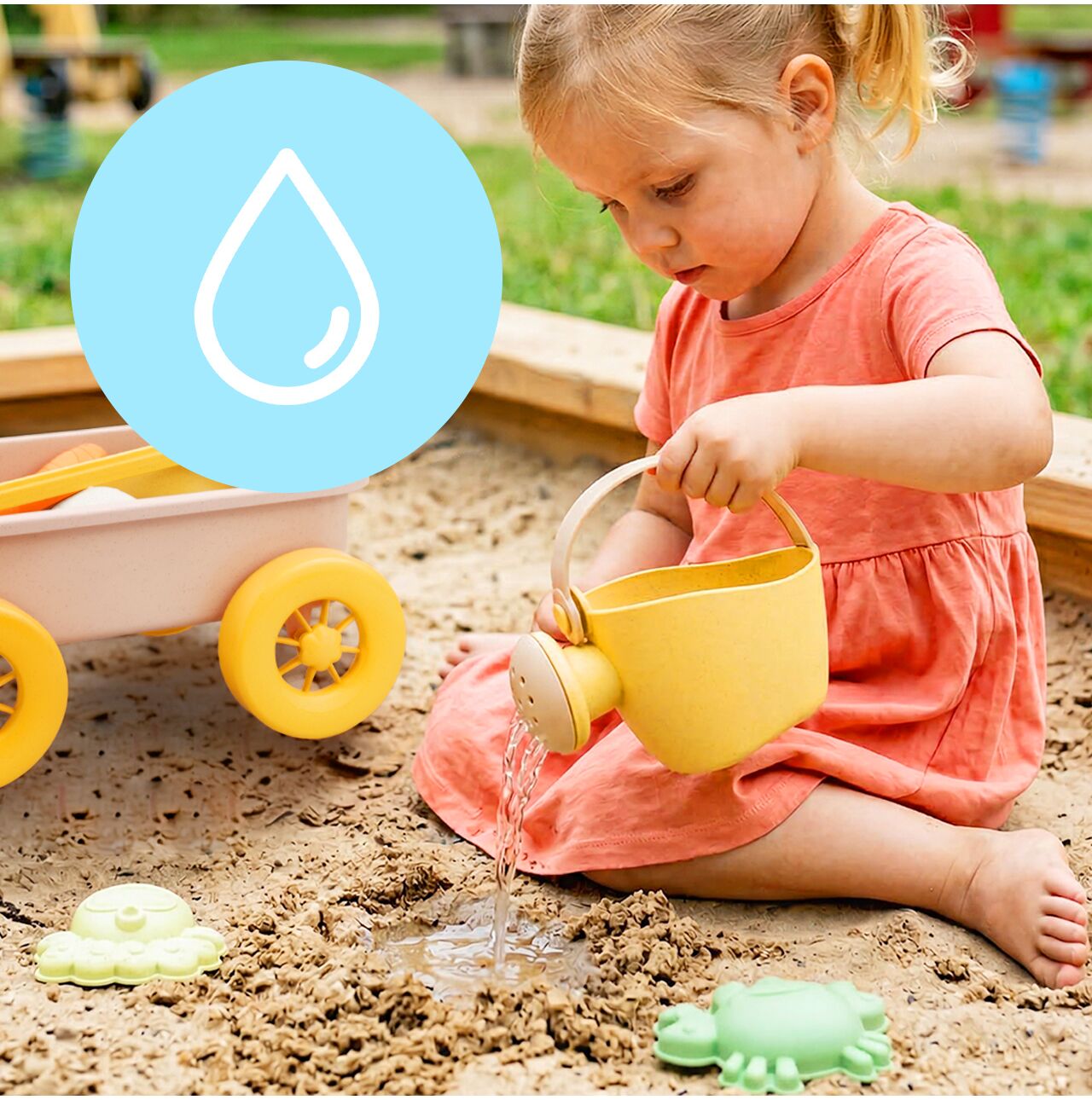 • Zastosowanie: piaskownica, plaża, ogród, zabawy sensoryczne z piaskiem i wodą