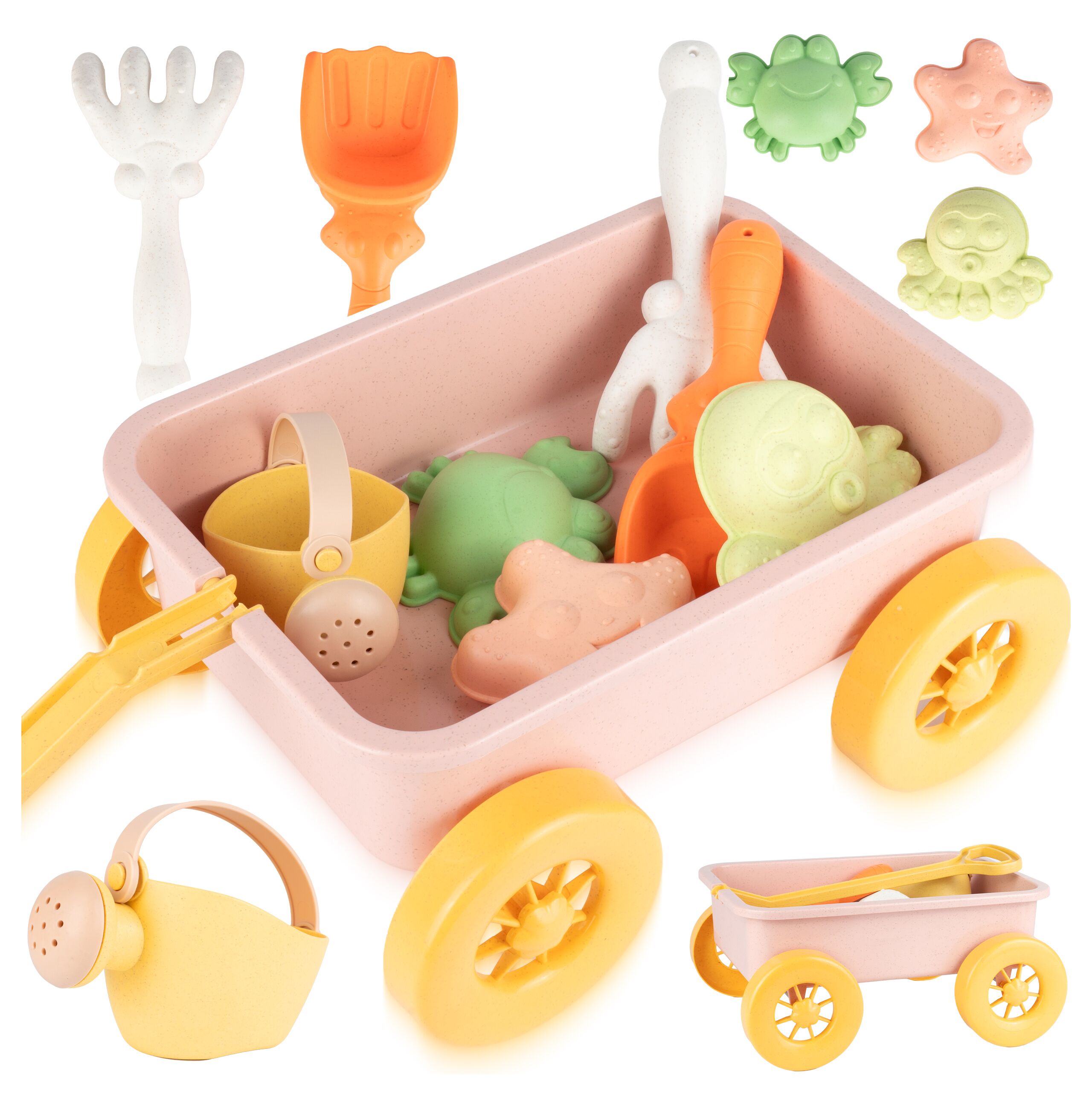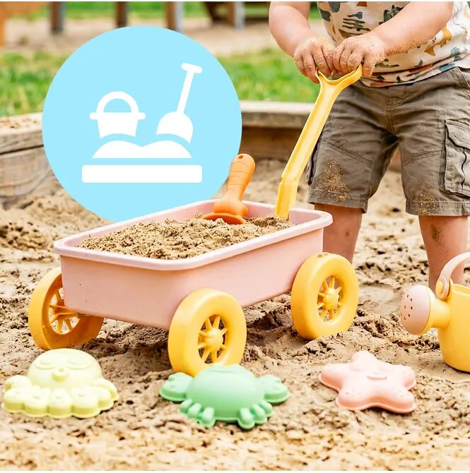 Wózek do Piaskownicy Rączka Zestaw do Piasku z Konewką Łopatką i Foremkami