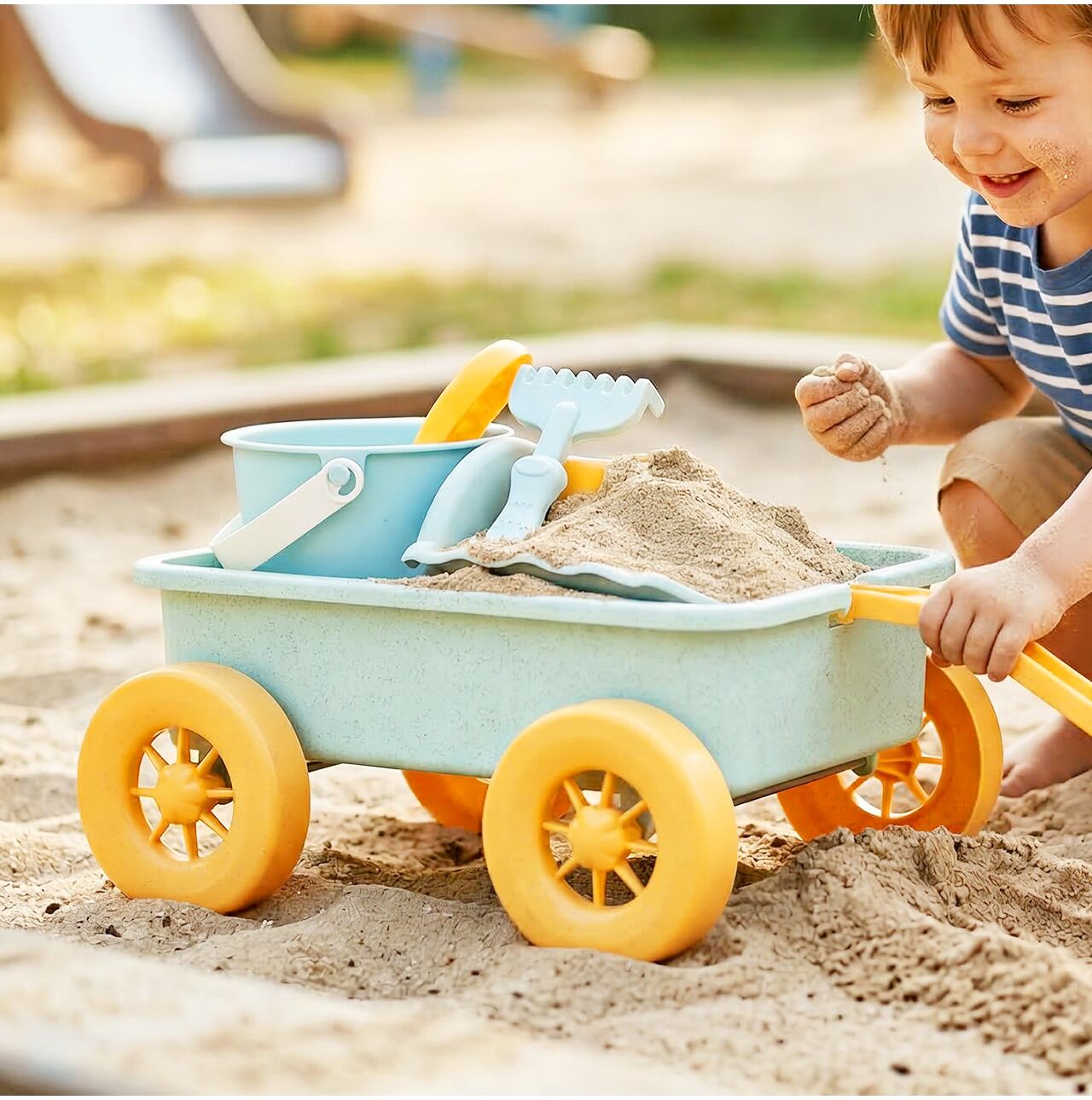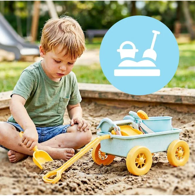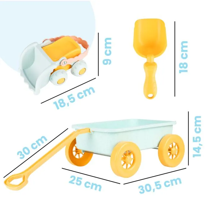 • Wózek do piasku w zestawie – idealny do przewożenia piasku i akcesoriów podczas zabawy w piaskownicy