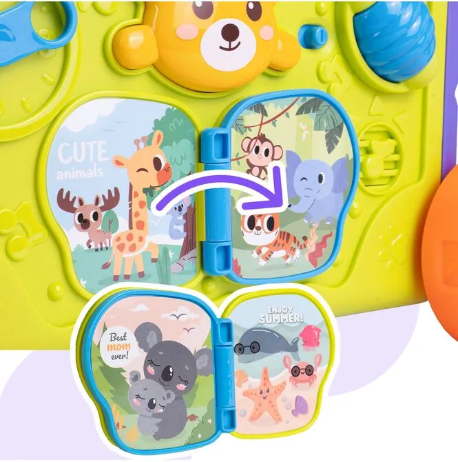 Dodatkowe funkcje dźwiękowe i muzyczne sprawiają, że zabawa staje się jeszcze bardziej atrakcyjna. Dziecko naciska, obraca, przesuwa i od razu dostaje odpowiedź — coś się rusza, coś brzmi, coś przyciąga uwagę. Taki efekt działa bardzo mocno na maluchy, bo wzmacnia ich zainteresowanie i chęć powtarzania czynności.