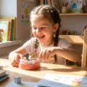 Drewniana strzykawka została zaprojektowana tak, aby zabawa była jeszcze bardziej realistyczna i angażująca. Dziecko może udawać podawanie lekarstwa lub wykonywanie zastrzyku pacjentowi, odgrywając scenki jak w prawdziwym gabinecie.