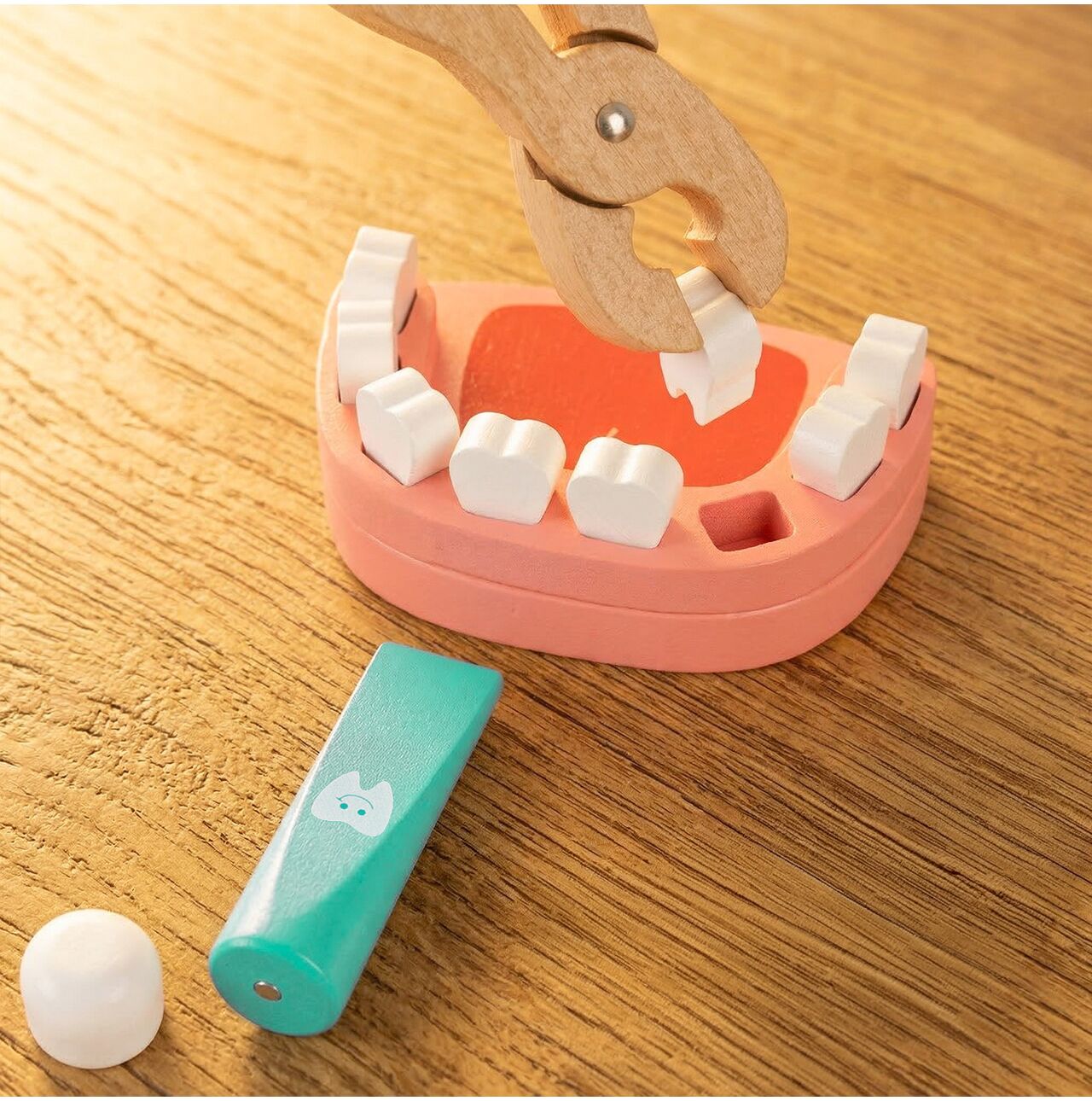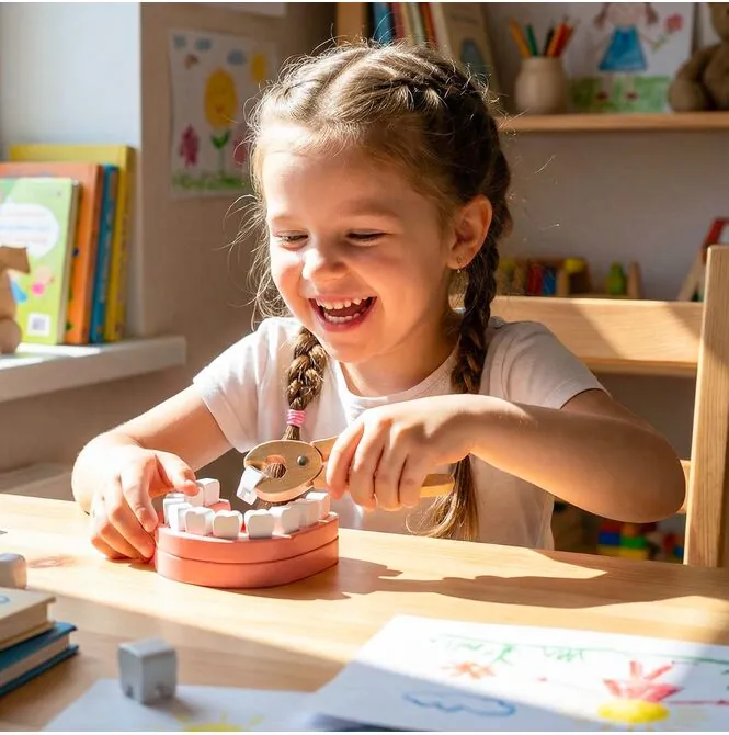 Zestaw z modelowymi zębami to świetna okazja do zabawy w małego dentystę. Dziecko może sprawdzać stan uzębienia, wyjmować i wkładać ząbki oraz odgrywać wizyty kontrolne w swoim własnym gabinecie. Taka zabawa rozwija wyobraźnię, uczy troski o higienę jamy ustnej i pomaga oswoić wizyty u dentysty w przyjazny, bezstresowy sposób.