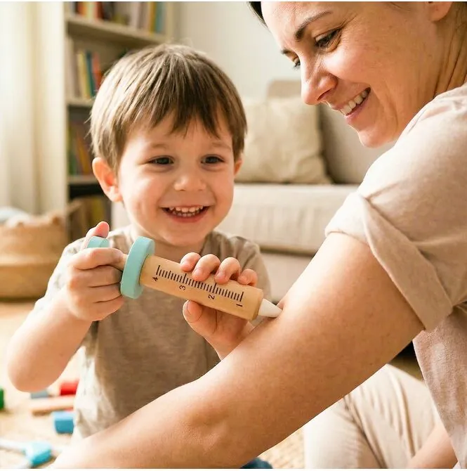 ✅ Drewniana strzykawka do zabawy w leczenie