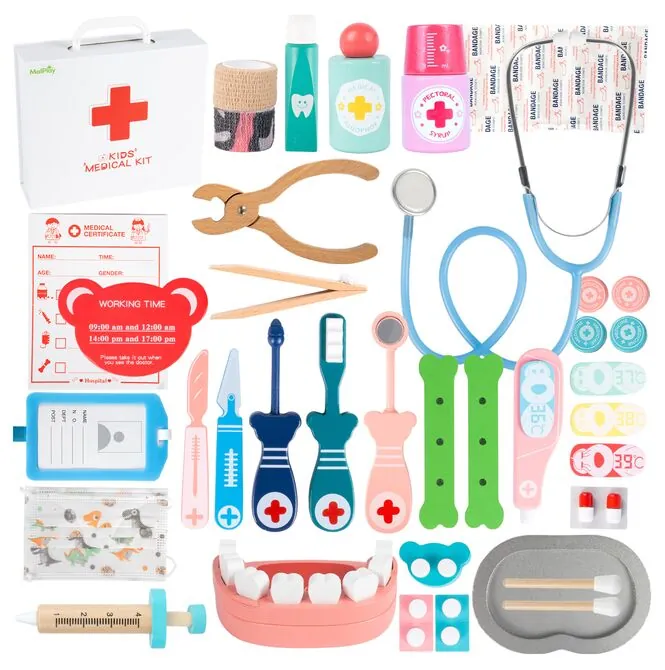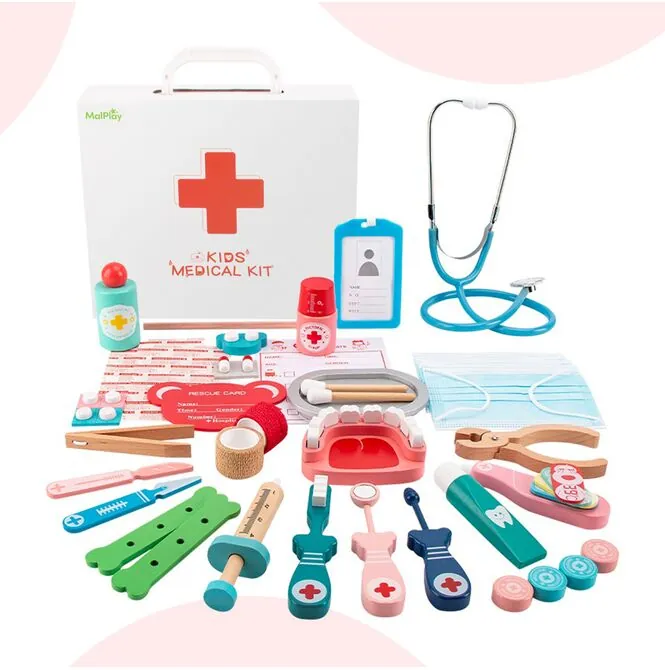 - drewniany zestaw lekarza i dentysty dla dzieci