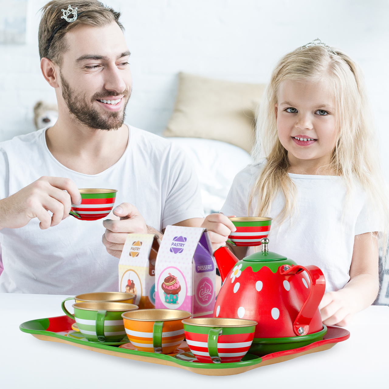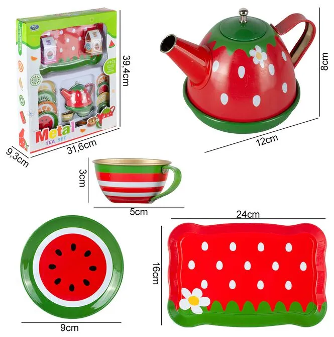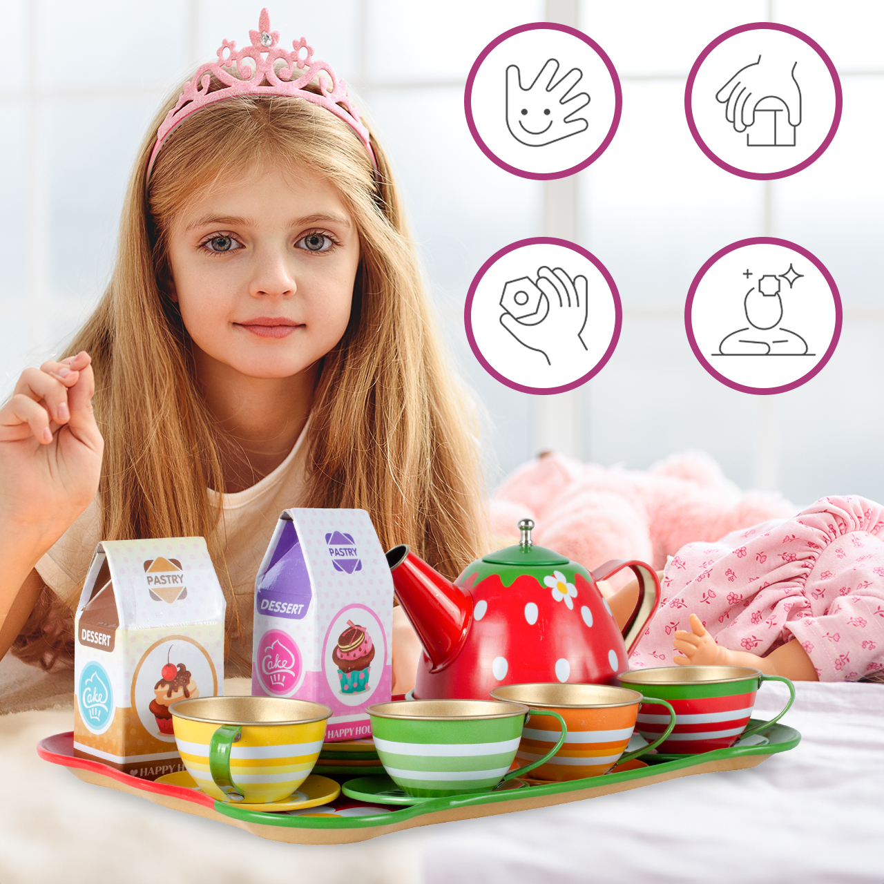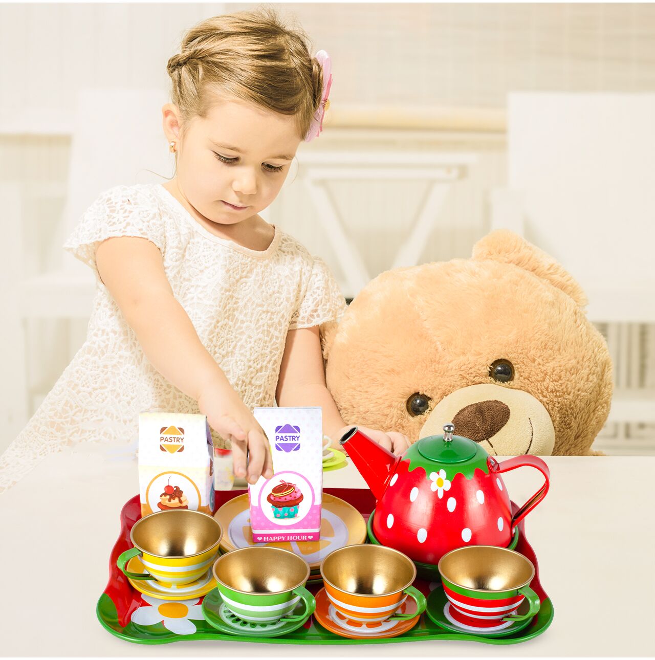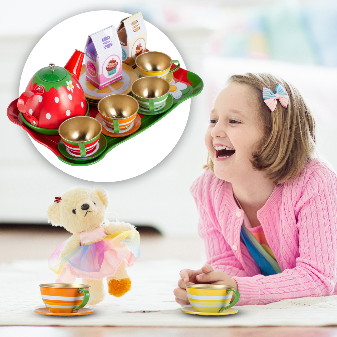 Zestaw Metalowy do Herbatki Herbaty dla Dzieci do Zabawy Serwis Kawowy 16el