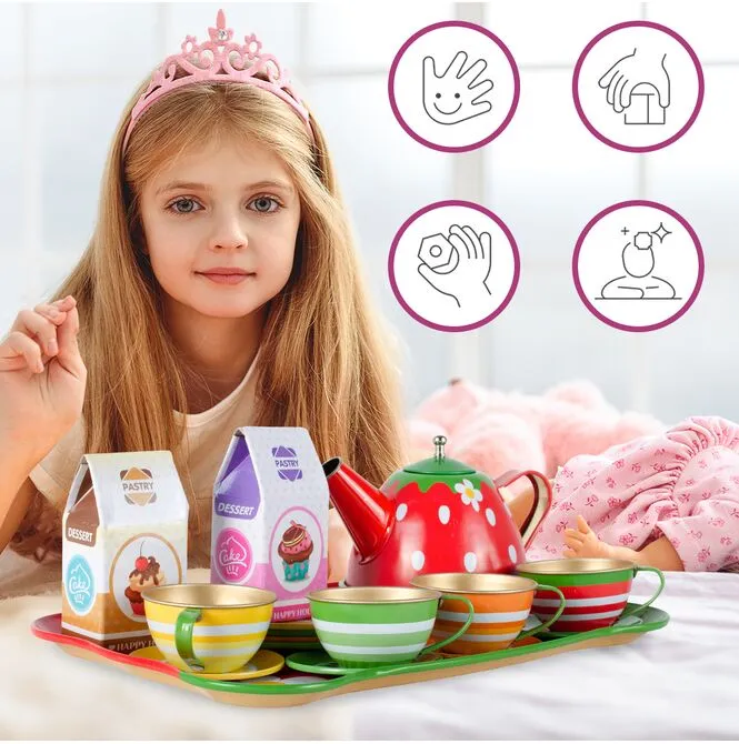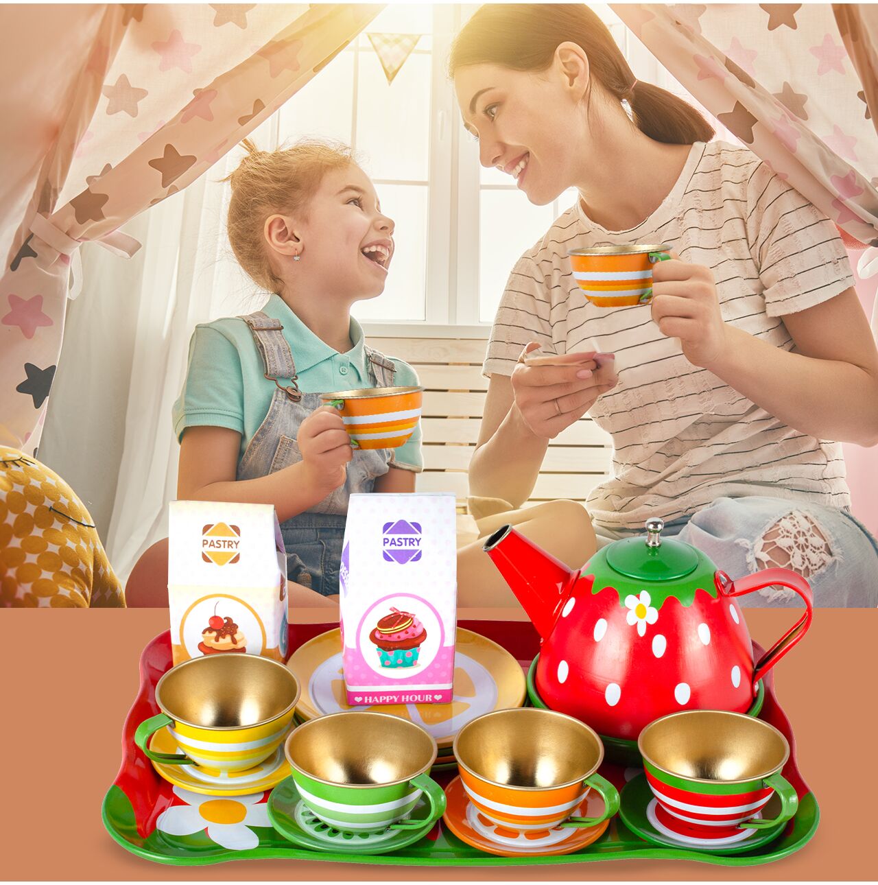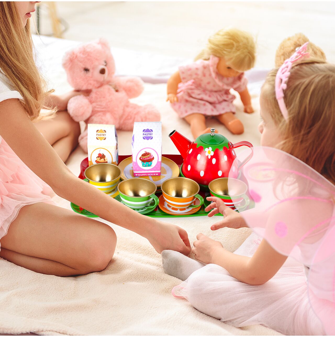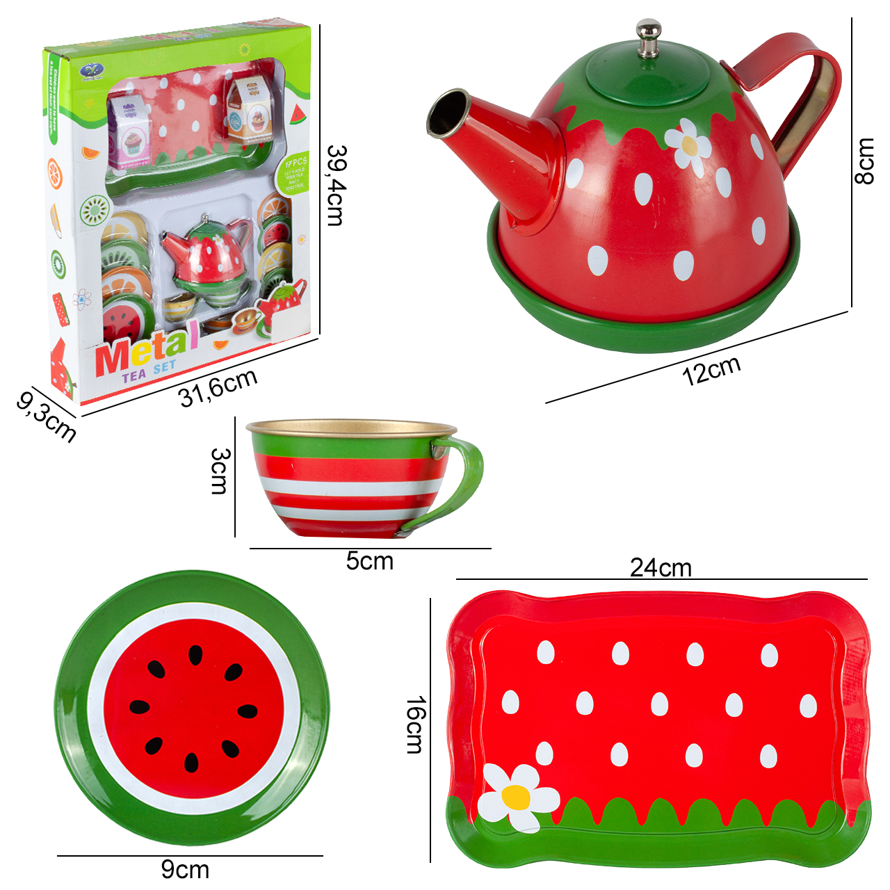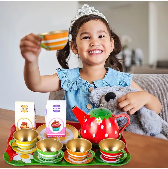 Zestaw Metalowy do Herbatki Herbaty dla Dzieci do Zabawy Serwis Kawowy 16el