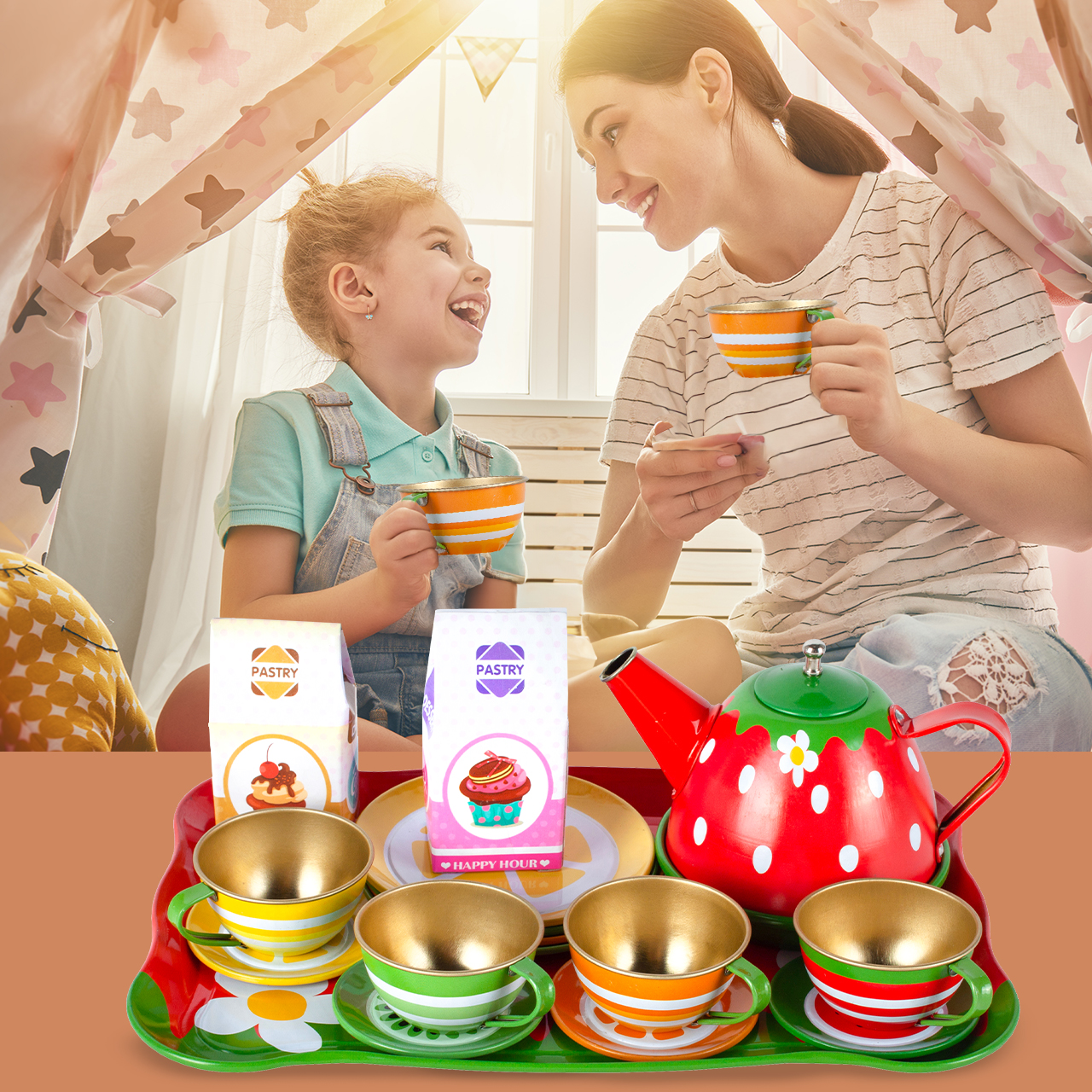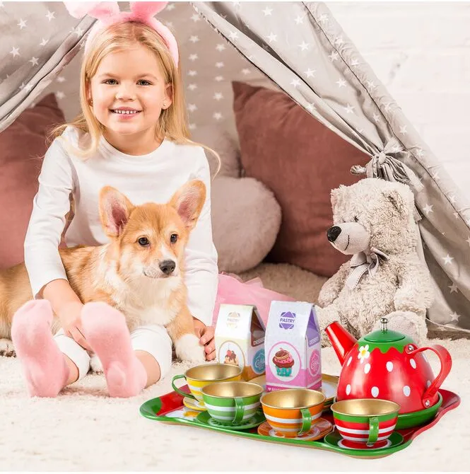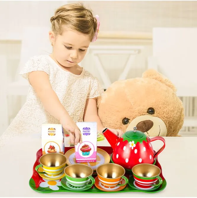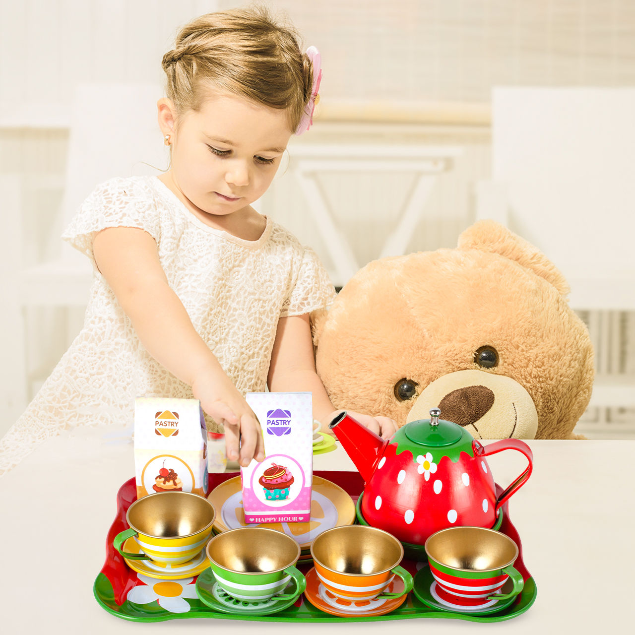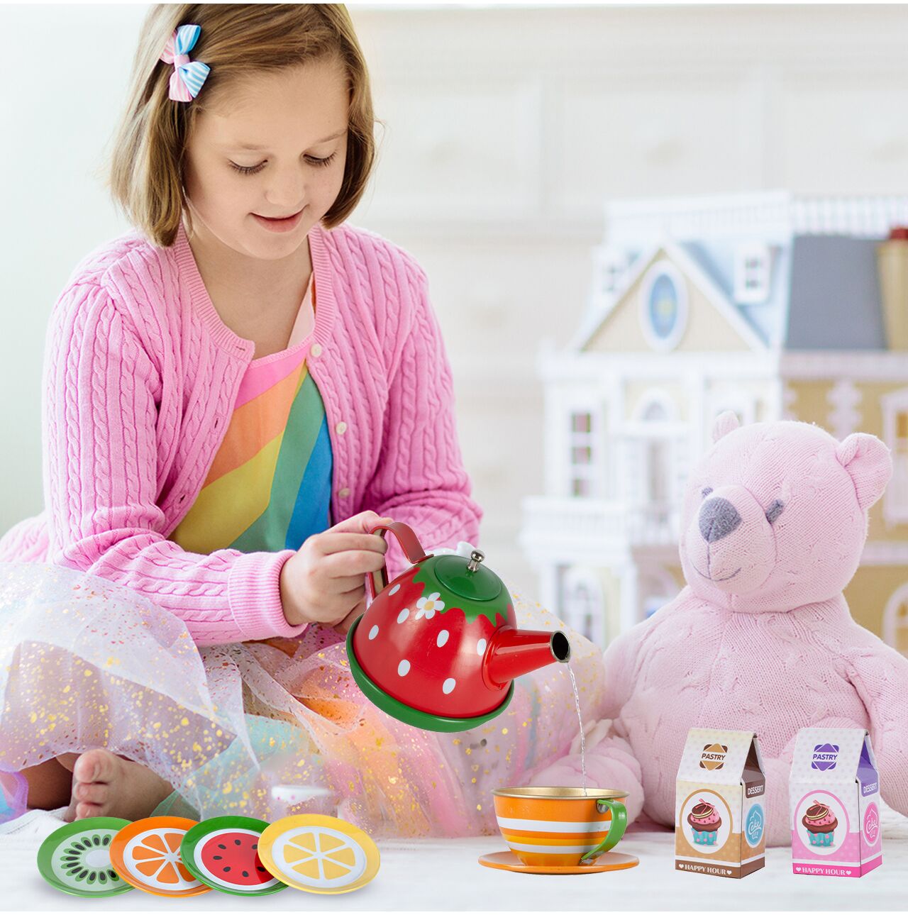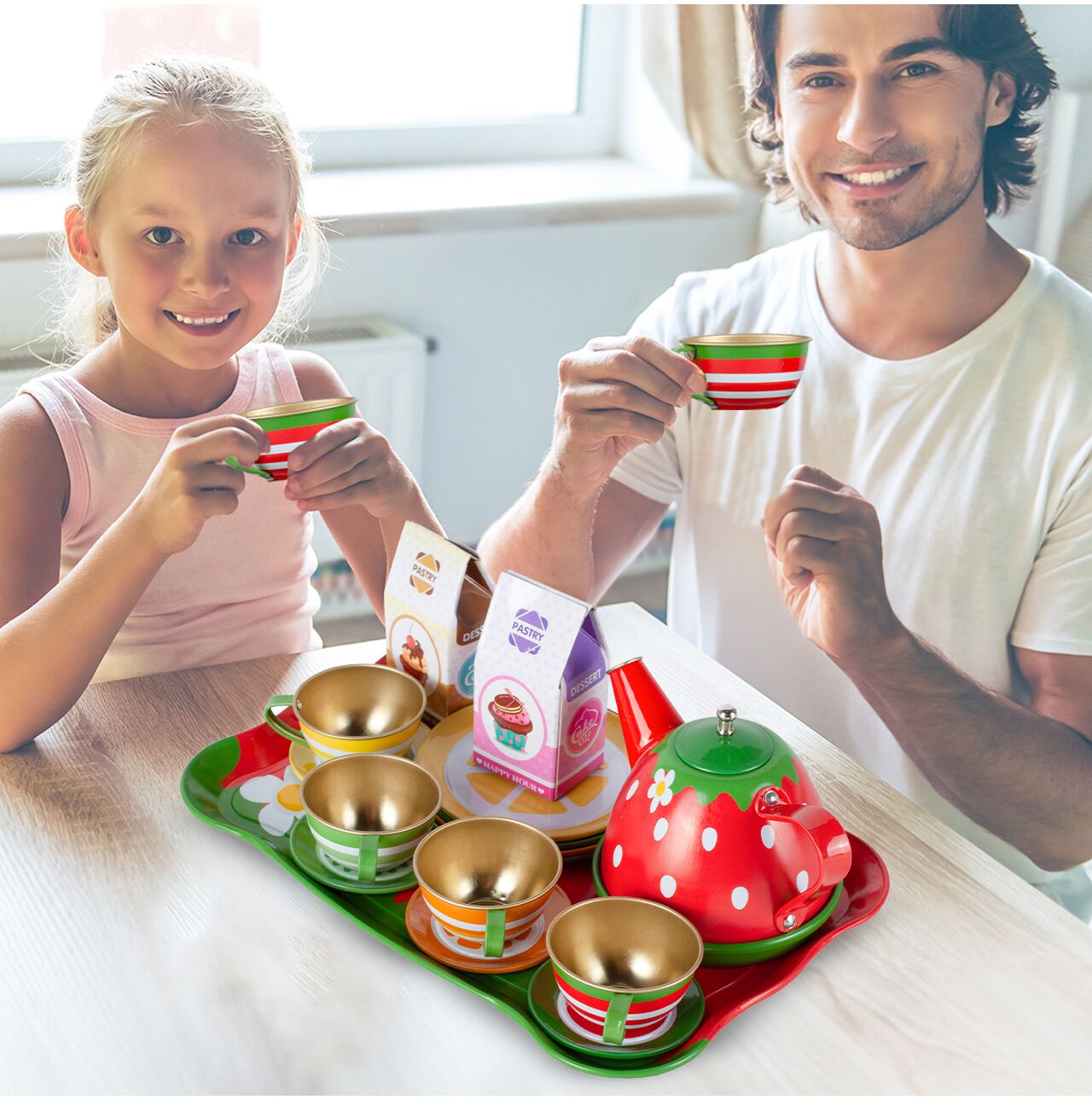 Zestaw Metalowy do Herbatki Herbaty dla Dzieci do Zabawy Serwis Kawowy 16el