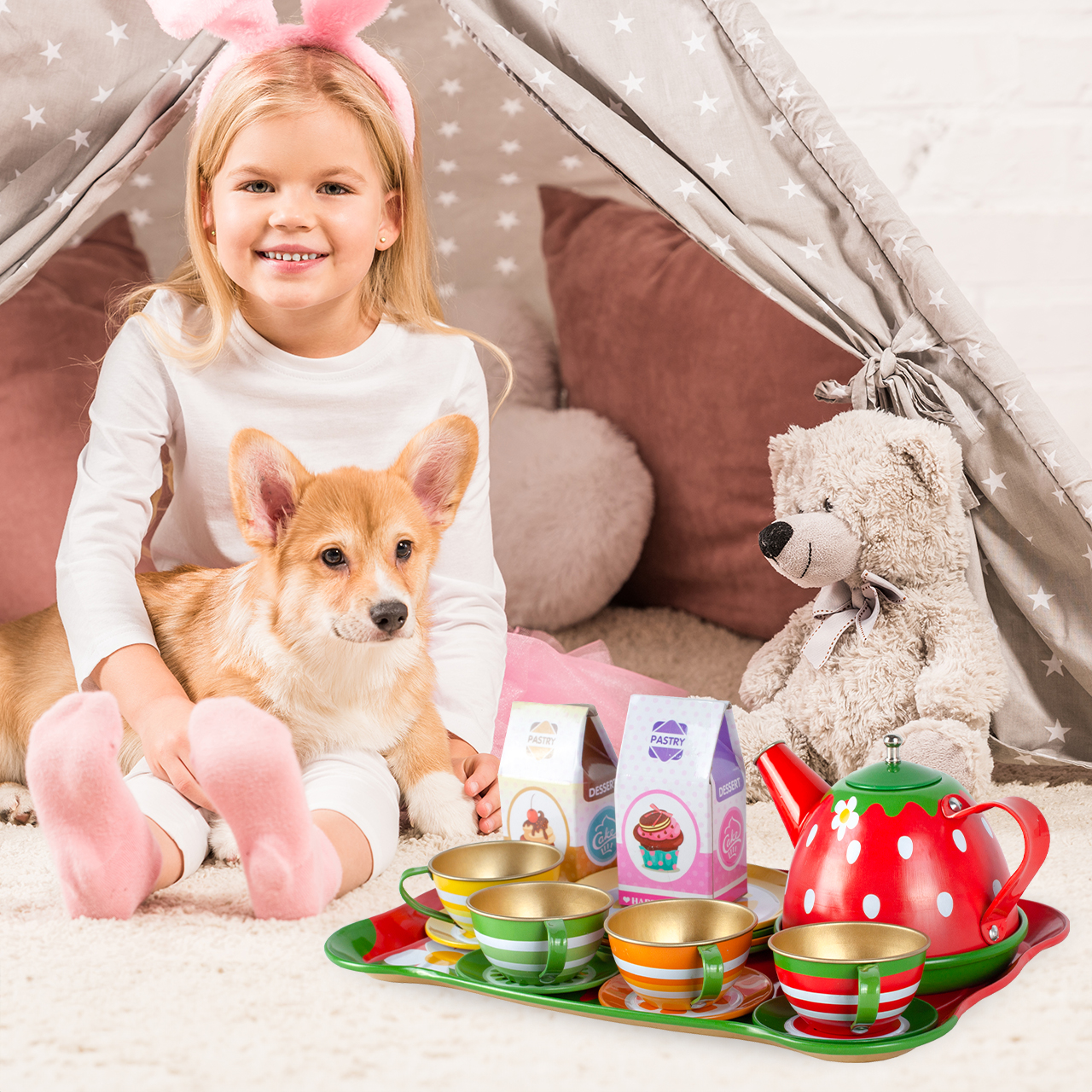 Dzięki bajkowej stylistyce i żywym kolorom, zabawa tym zestawem przenosi dzieci do magicznego świata wyobraźni. Truskawkowy dzbanek, kolorowe filiżanki i pasujące spodki sprawiają, że każda popołudniowa herbata staje się wyjątkowym rytuałem. To idealny zestaw do zabawy w dom, piknik lub przyjęcie dla misiów i lalek!