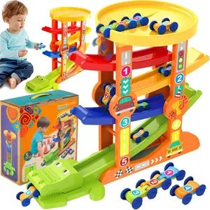 Гонка на іграшкових автомобілях — чудова іграшка для розвитку ручних навичок і розуміння причини та наслідку.